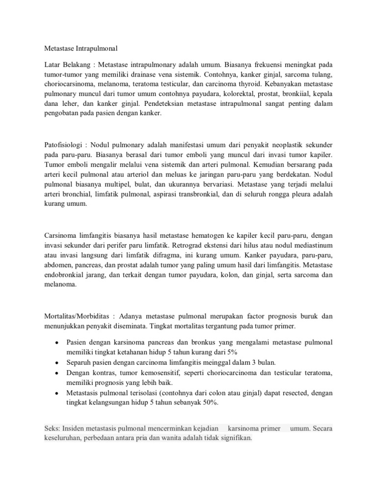 Gene testing can identify an egfr mutation, and advances in lung. Karsinoma sel basal akan tampak seperti papul seperti lilin yang disertai depresi sentral, menyerupai mutiara, dan mudah berdarah jika terkena trauma. Kanker payudara, metastasis multipel, metastasis orbita, metastasis tulang, metastasis paru. It has a fast spread to the lungs even early in the disease. Pure small cell, mixed small cell, dan large cell carcinoma.